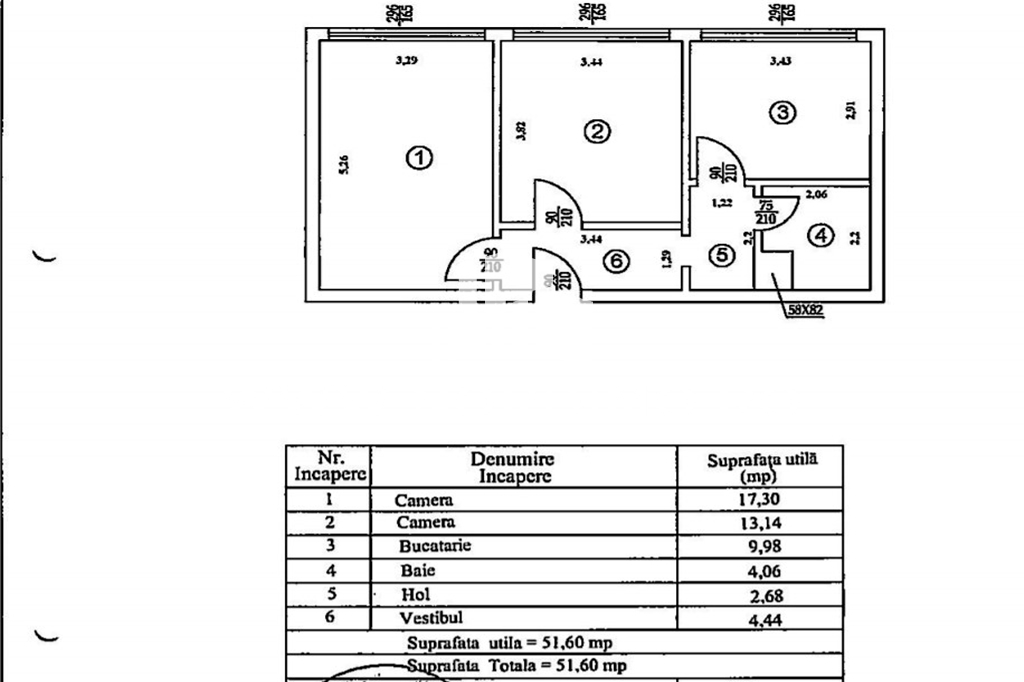 Este dispus pe o suprafață totală de 52mp utili și este compus dintr-un living, bucătărie închisă, dormitor, baie si vestibul generos.