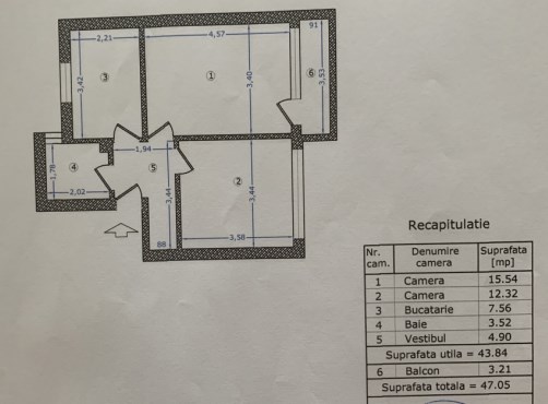 Este dispus pe o suprafata totala de 47mp, suprafata utila fiind de 44mp si este compus din living spatios cu balcon, bucatarie, dormitor, baie si hol cu debara.